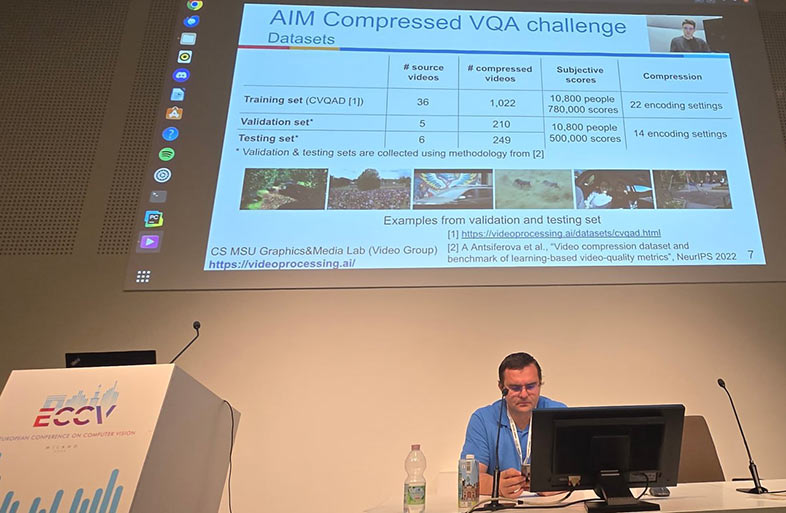 Заведующий лабораторией «Интеллектуальный анализ видео» Дмитрий Ватолин выступил с докладом «Метрики качества или как ML/DL могут существенно усложнить решение задачи» на конференции «ГрафиКон-2022» — крупнейшей в России и странах СНГ конференции в области компьютерной графики, обработки изображений и машинного зрения, систем визуализации и виртуального окружения. В докладе рассматриваются различные нейросетевые артефакты, возникающие в таких важных задачах обработки изображений и видео, как сжатие и повышение разрешения, и поднимается вопрос необходимости создания новых методов оценки качества, которые бы учитывали данные артефакты. Данный доклад также будет представлен на конференциях PlayButton и VideoTech.